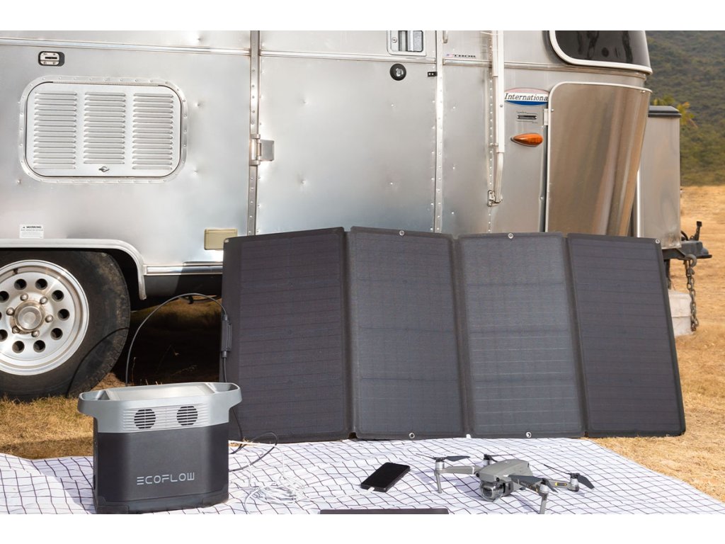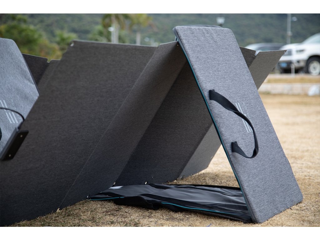 160 W solární panely EcoFlow se dají v případě potřeby lehce složit, naložit a převézt na jiné místo. Rozložení a připojení je také naprostá hračka. Skořepinové pouzdro pro přenášení lze využít také jako stojan pro přesné nastavení úhlu panelu ke slunečním paprskům. Pokud potřebujete propojit více solárních panelů, stojan poslouží také k tomu, aby si panely vzájemně nestínily a nedocházelo tak se snižování výkonu.