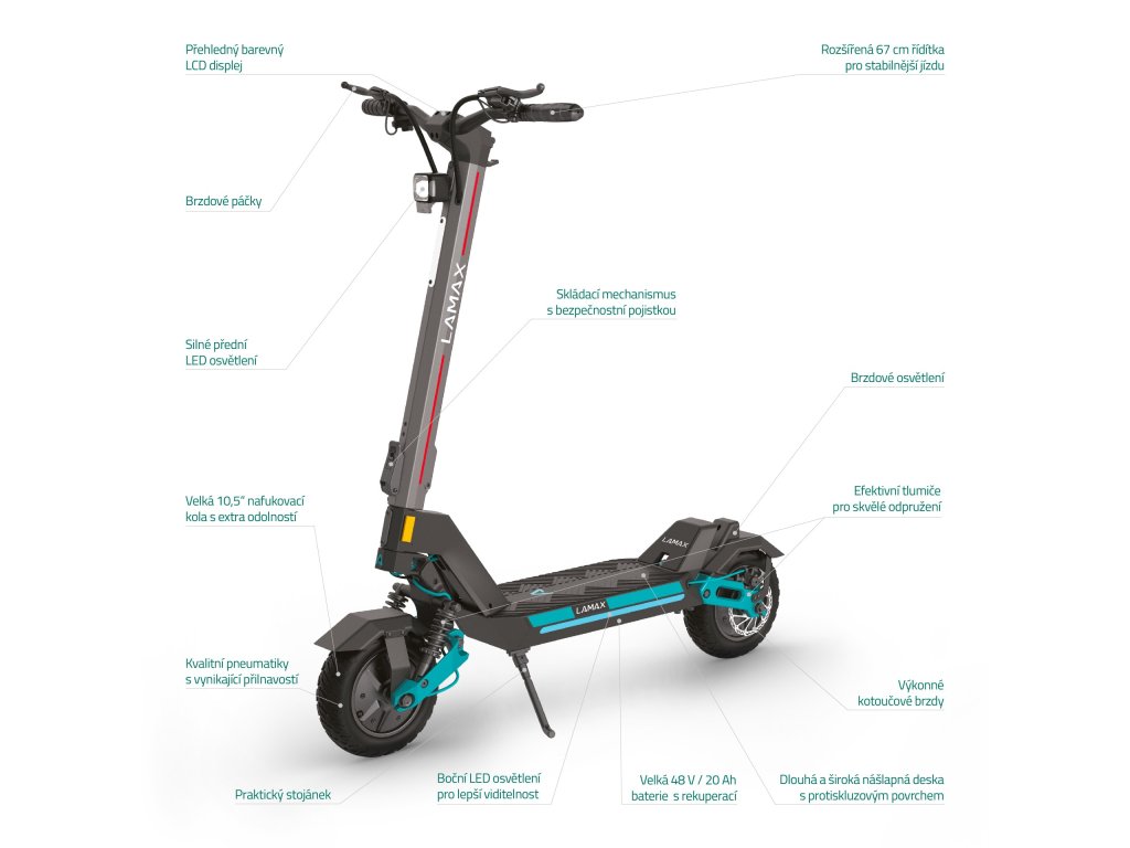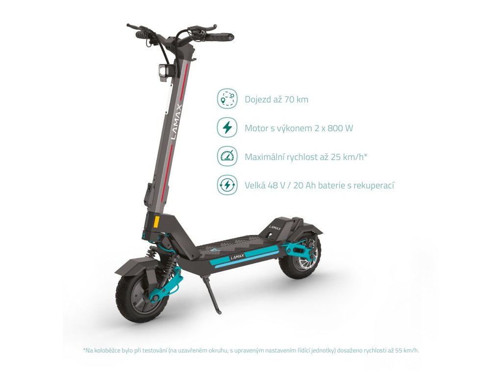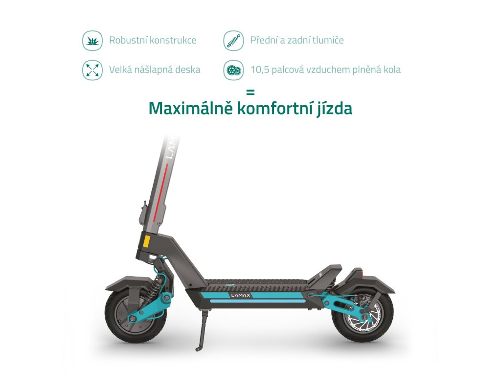 Elektrický skúter LAMAX eTank SA70 | Výkon 1600 W (2x 800 W) | Batéria 20 Ah (960 Wh) | Dojazd až 70 km | Široké 10,5" kolesá | Nosnosť 150 kg |