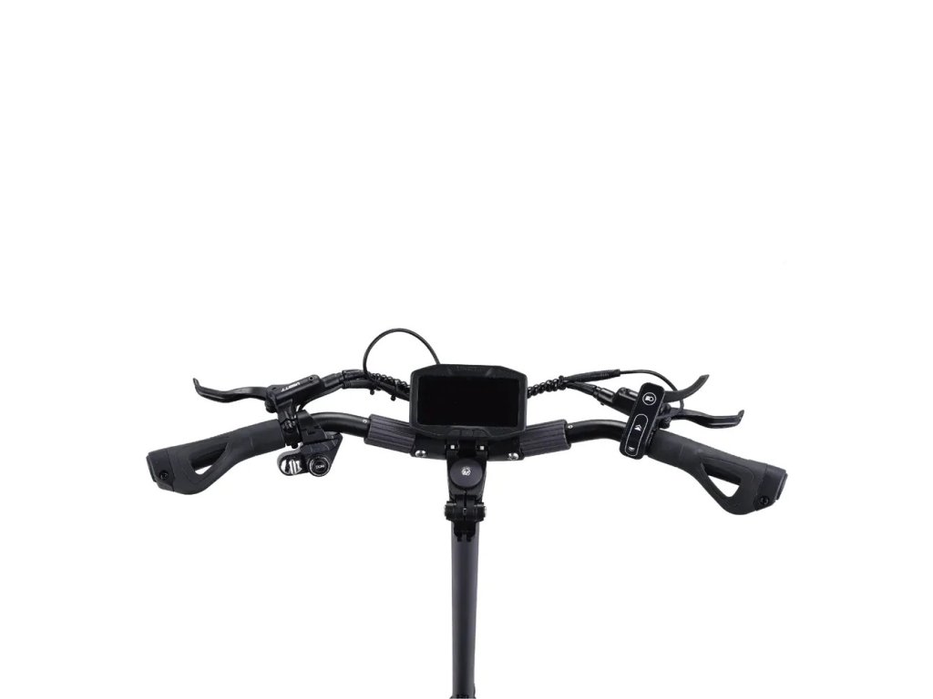 Všechny ovládací prvky najdete na řídítkách. U Vsettu standardní plyn na ukazováček spolu s moderním přepínačem rychlostí a světel po pravé ruce zabere na řídítkách minimum místa. Potěší i 3,5“ středový LCD displej. Velkým pokrokem je kompaktní přepínání blinkrů palcem levé ruky, kde najdete mj. i klakson a přepínač jízdy na dva motory. Komfort ale pocítíte nejen na řídítkách během ovládání koloběžky. Kombinace kyvné vidlice a pružinových tlumičů vám zajistí pohodlnou jízdu i na českých děravých silnicích.